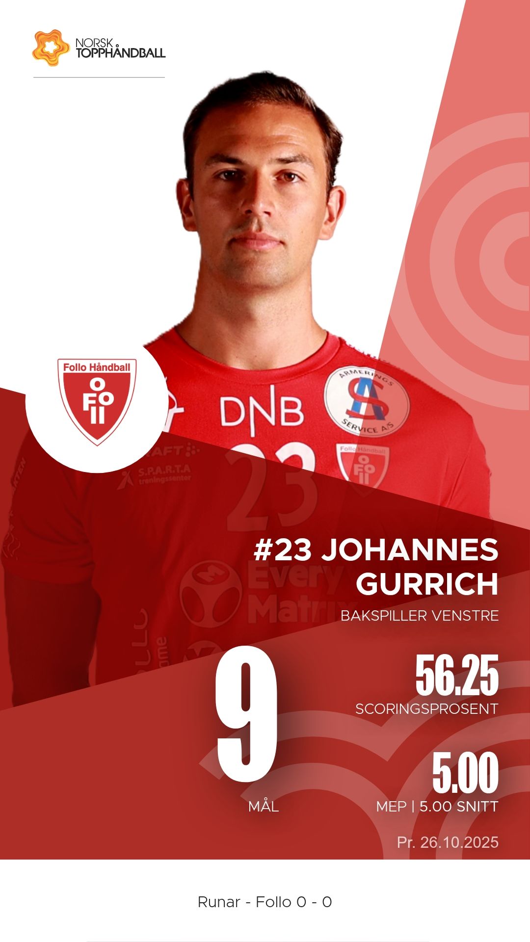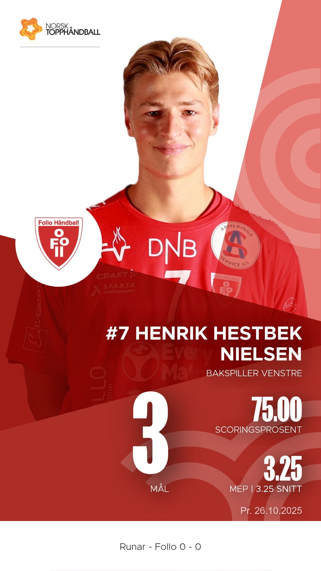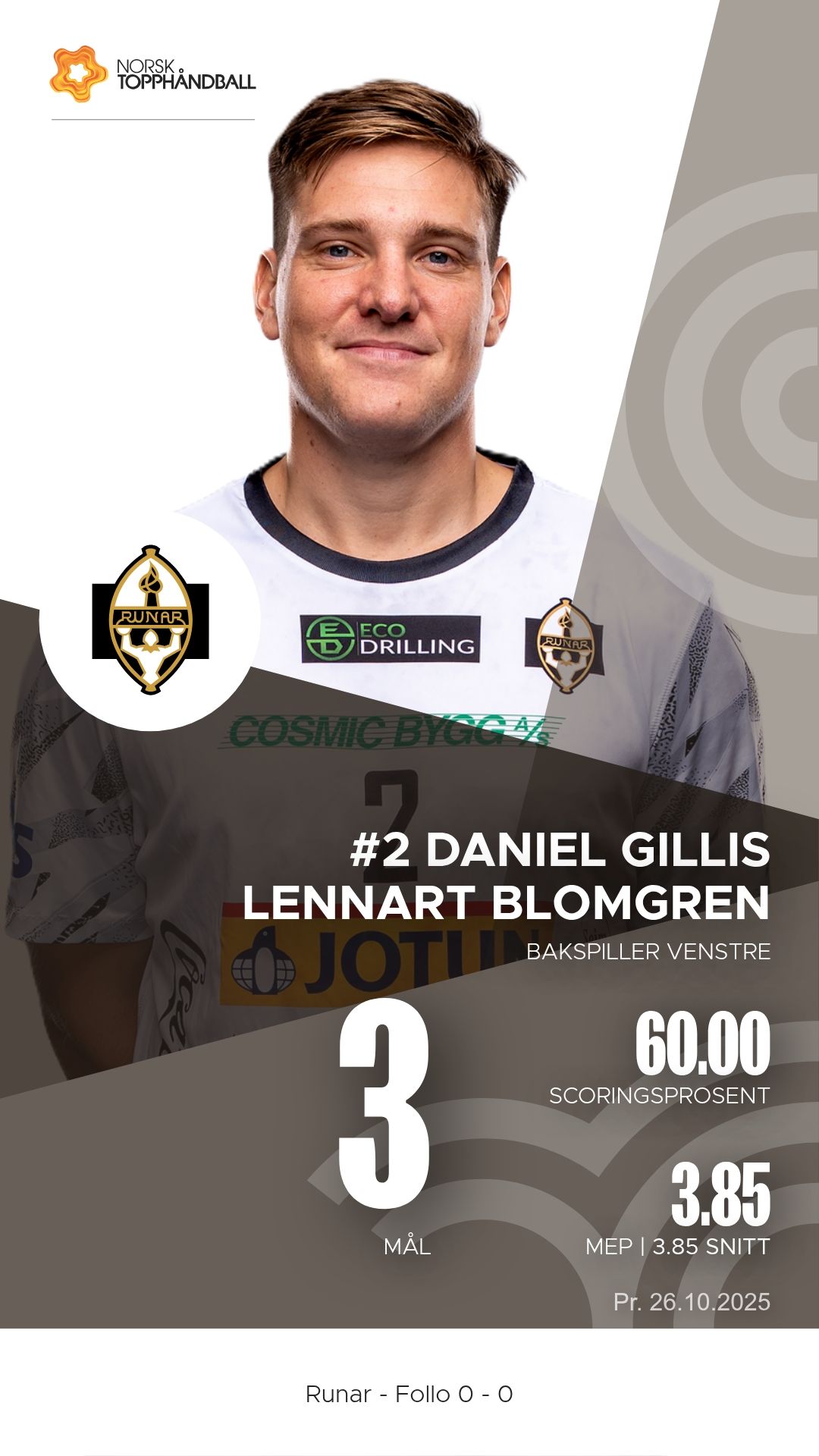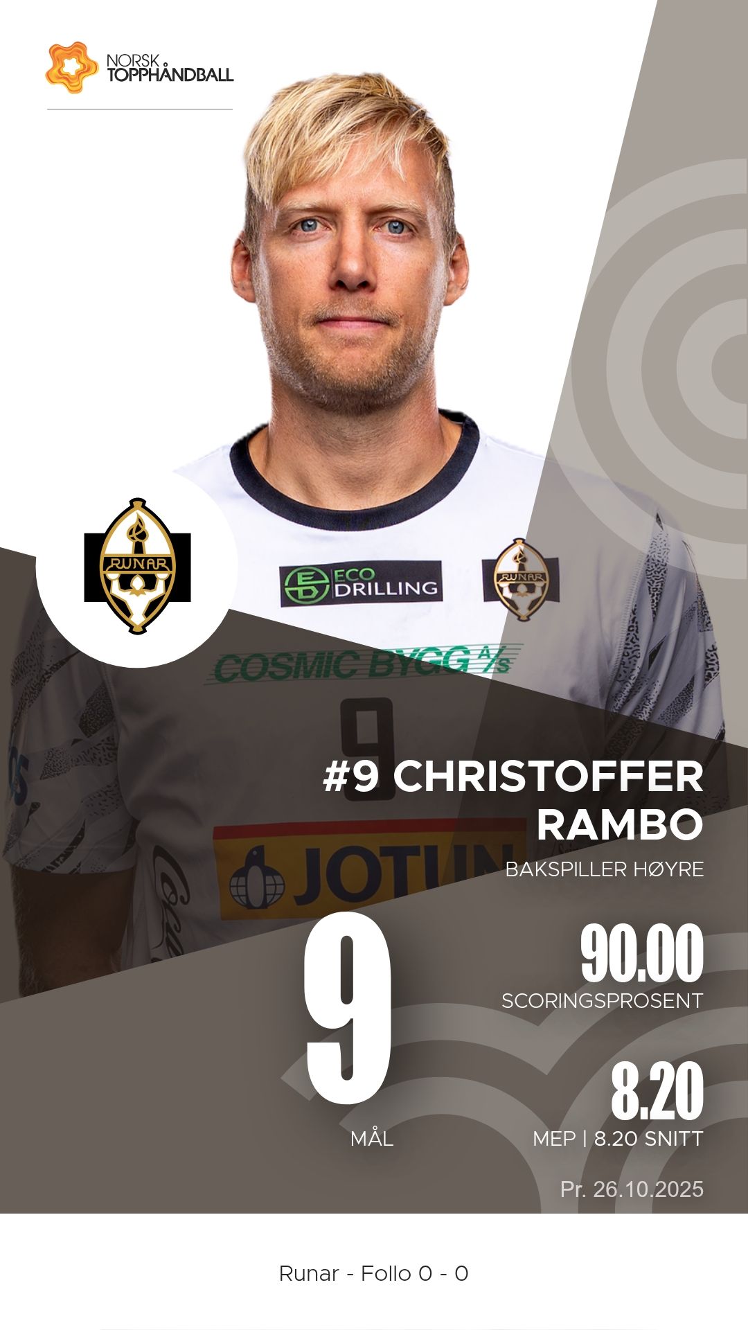 Christoffer Rambo ble den mest effektive spilleren på banen med ni mål og seks assists, og var klart toneangivende i Runars angrepsspill. Tord Lea Knutsen leverte også en komplett kamp fra bakspillerposisjon med fem scoringer og sju målgivende pasninger. På linja imponerte Sander Rogne Myklebust med fire mål på fire forsøk, mens Kasper Bjanes Iversen viste effektivitet fra høyrekanten. Blomgren bidro med ni assists og styrte mange av angrepene. For Follo var Johannes Gurrich mest fremtredende med ni mål, mens Jostein Straume Epland og Henrik Hestbek Nielsen også leverte solide bidrag.
