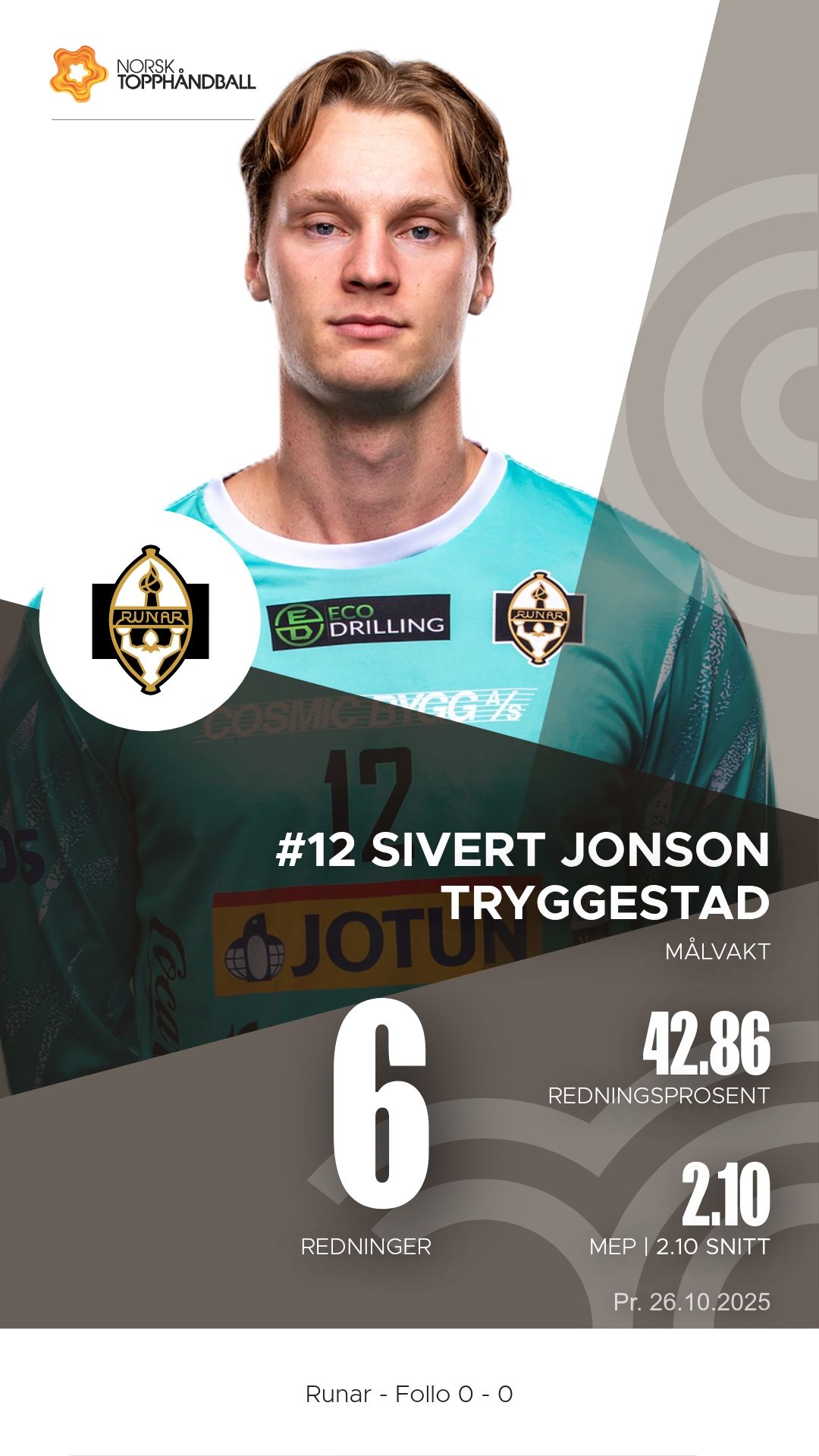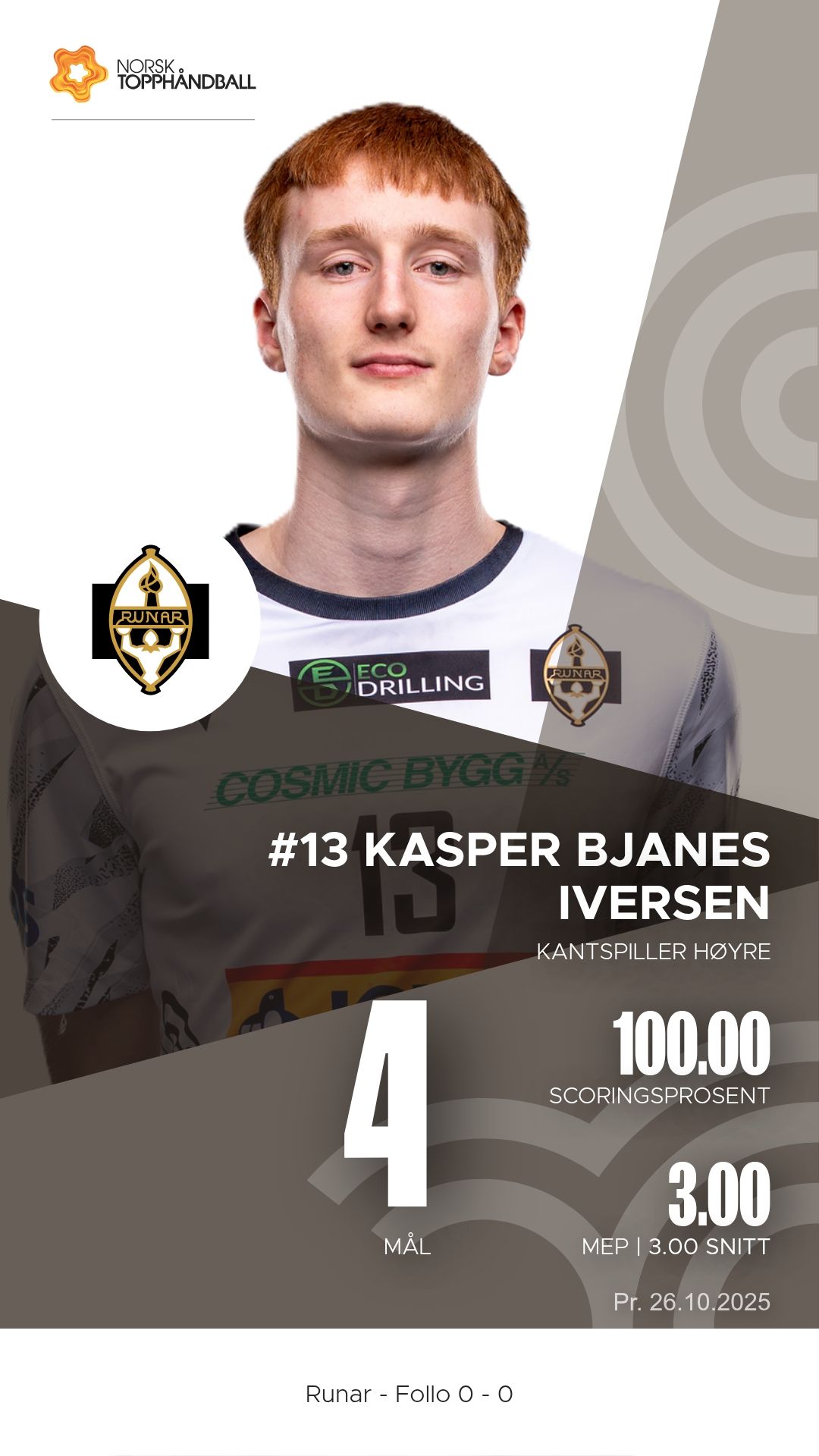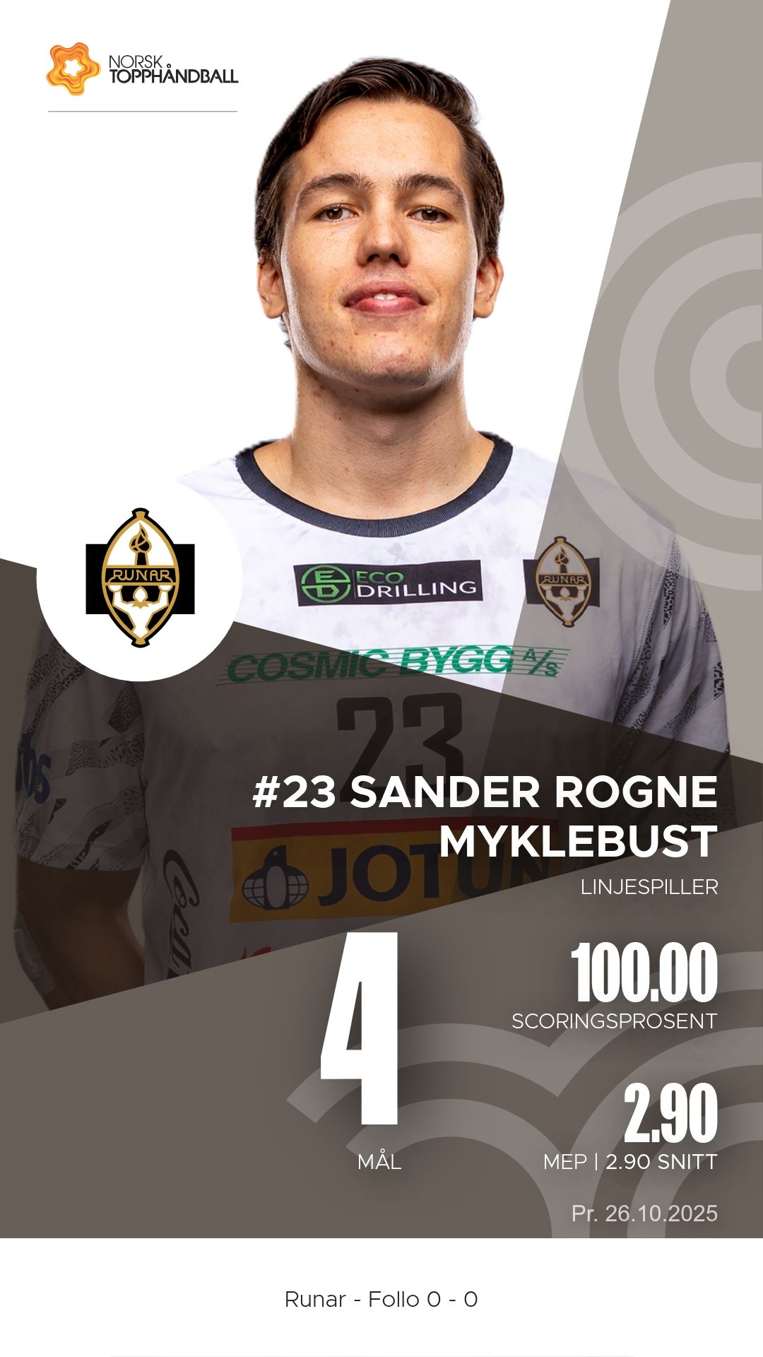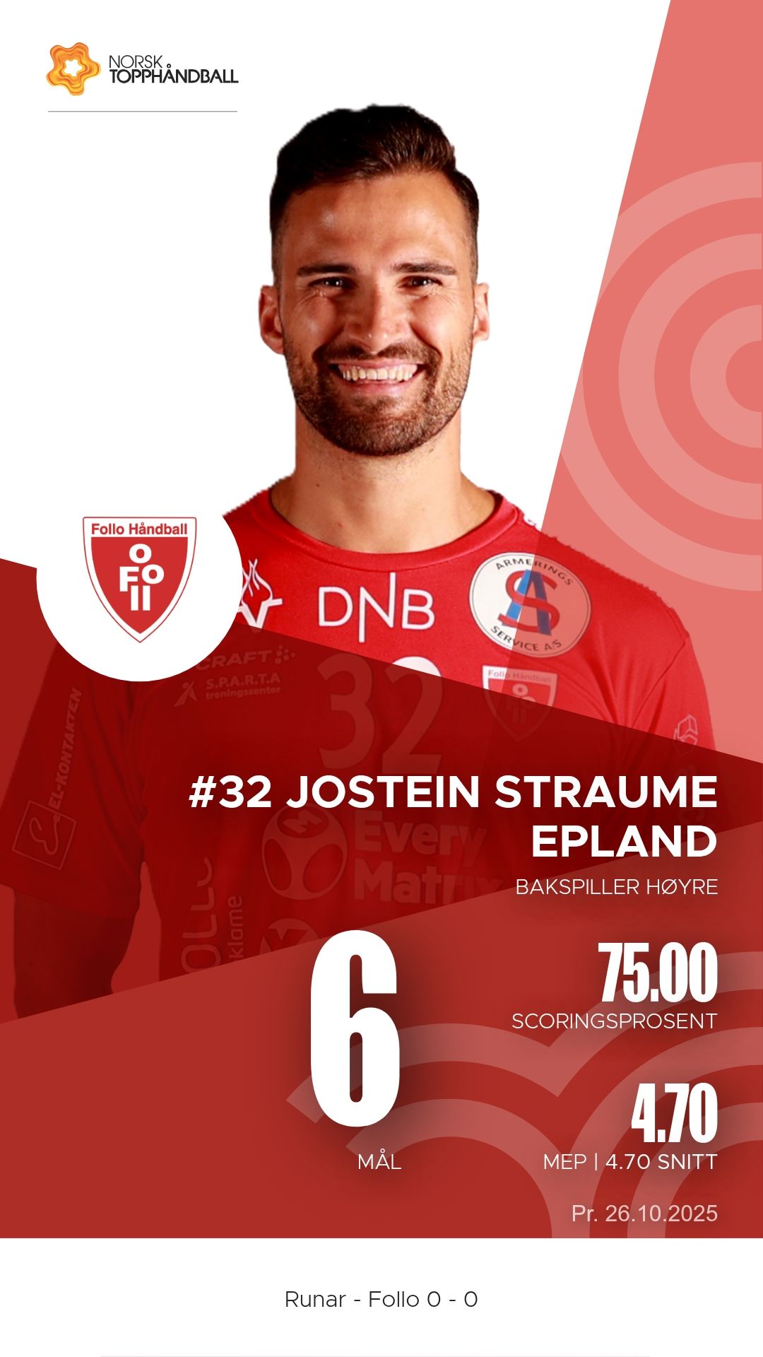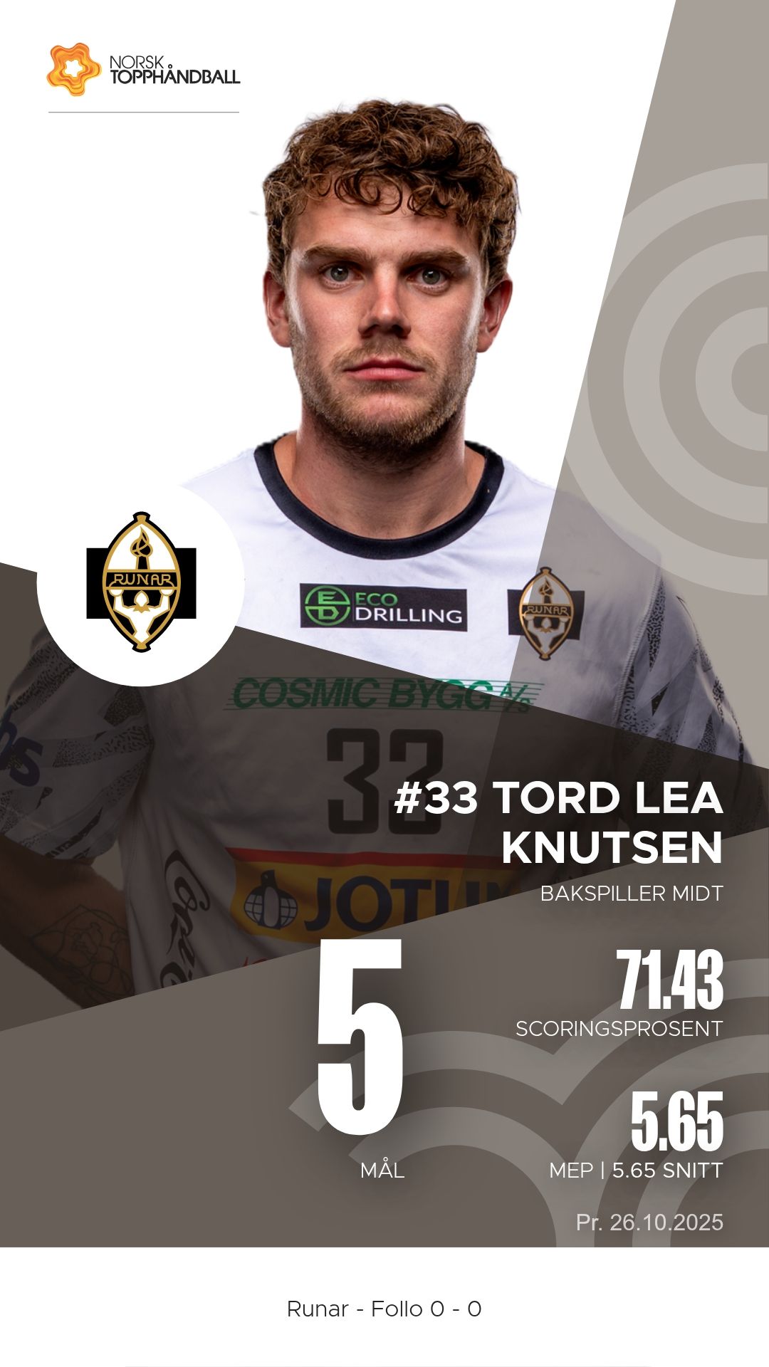 Runar Håndball Elite tok imot Follo i Runarhallen søndag 26. oktober 2025 klokken 17:00 til en kamp i REMA 1000-ligaen sesongen 2025–2026. Hjemmelaget leverte en solid forestilling og vant til slutt 40–32 etter å ha ledet 23–18 ved pause.