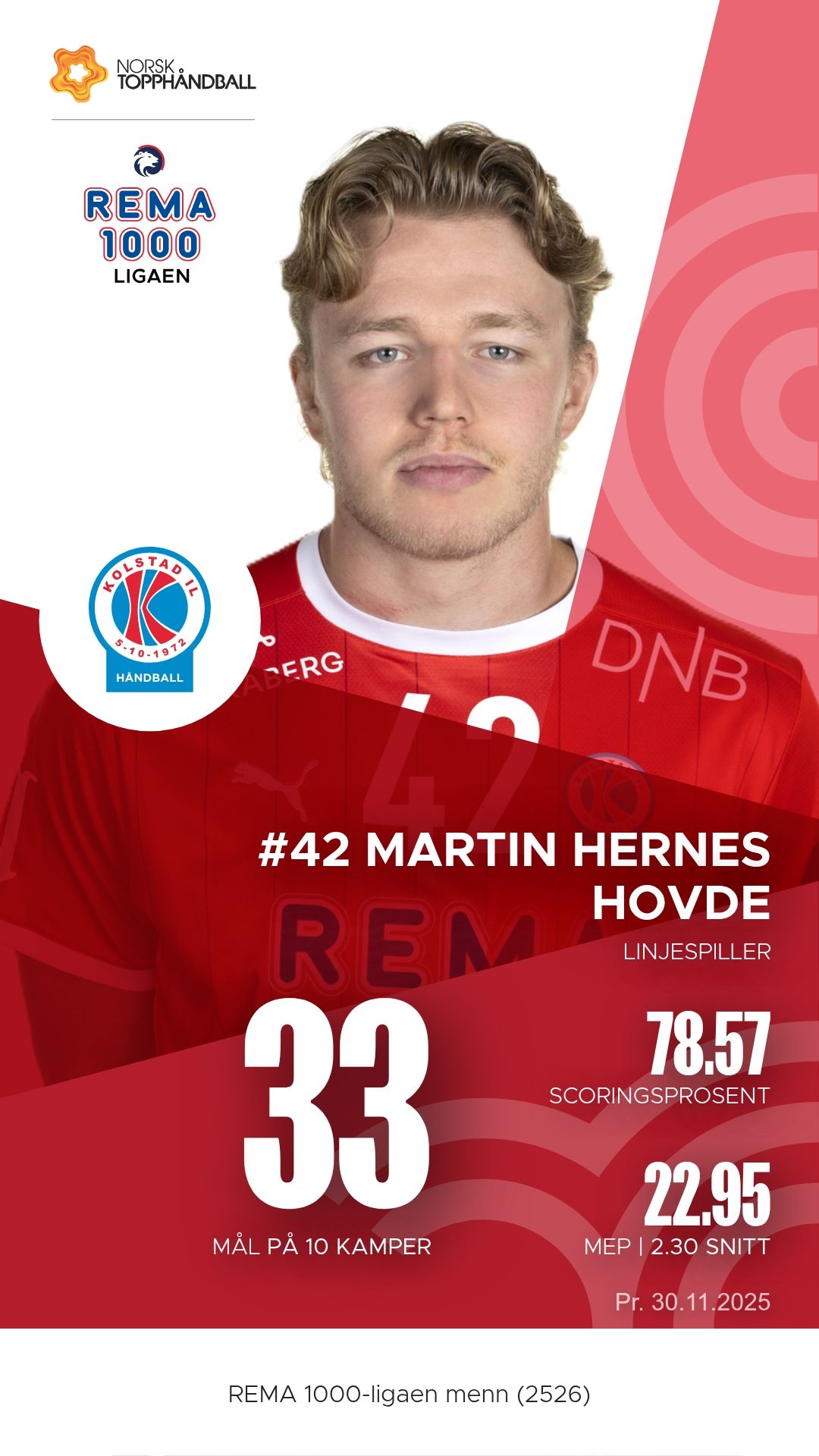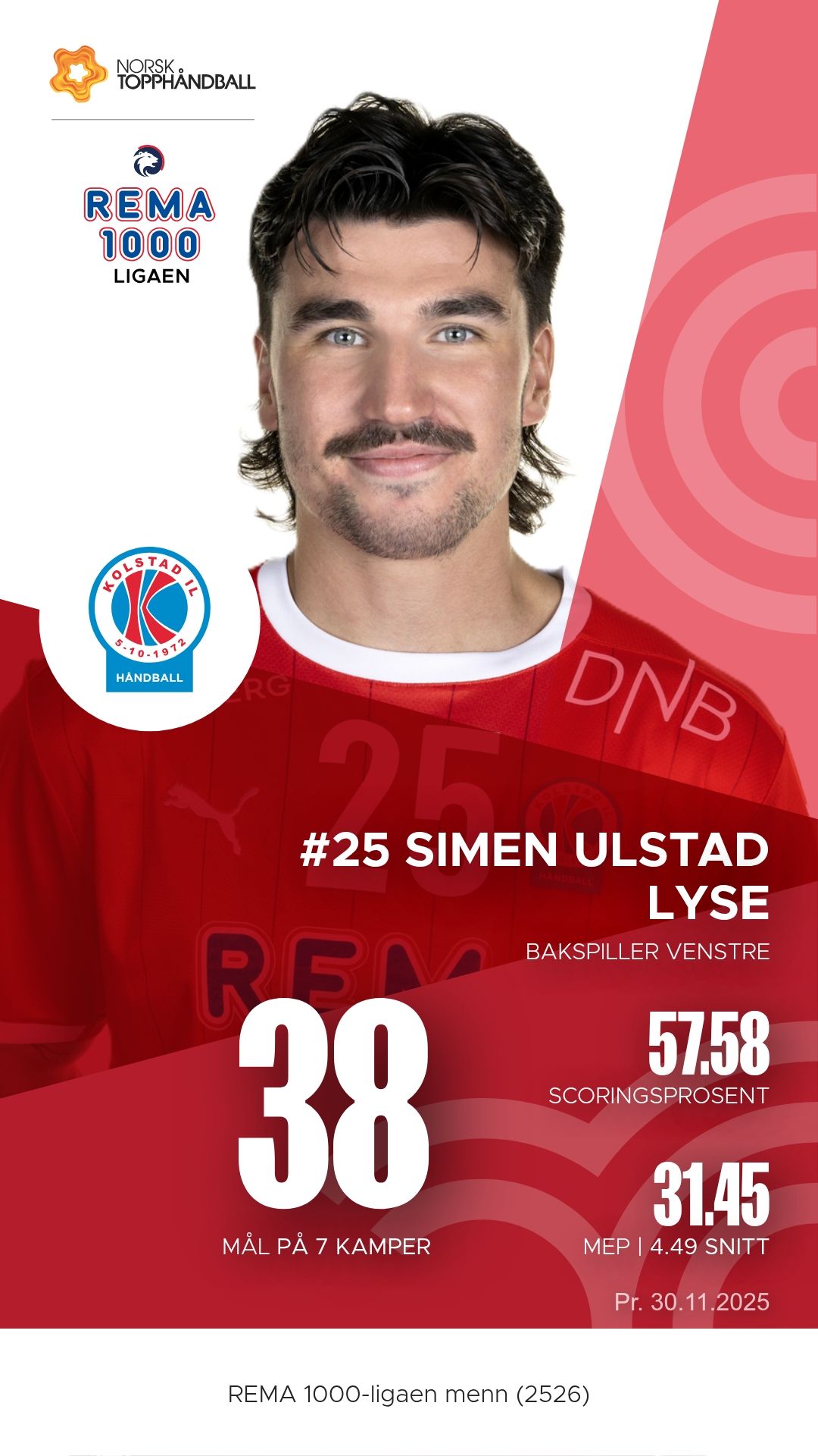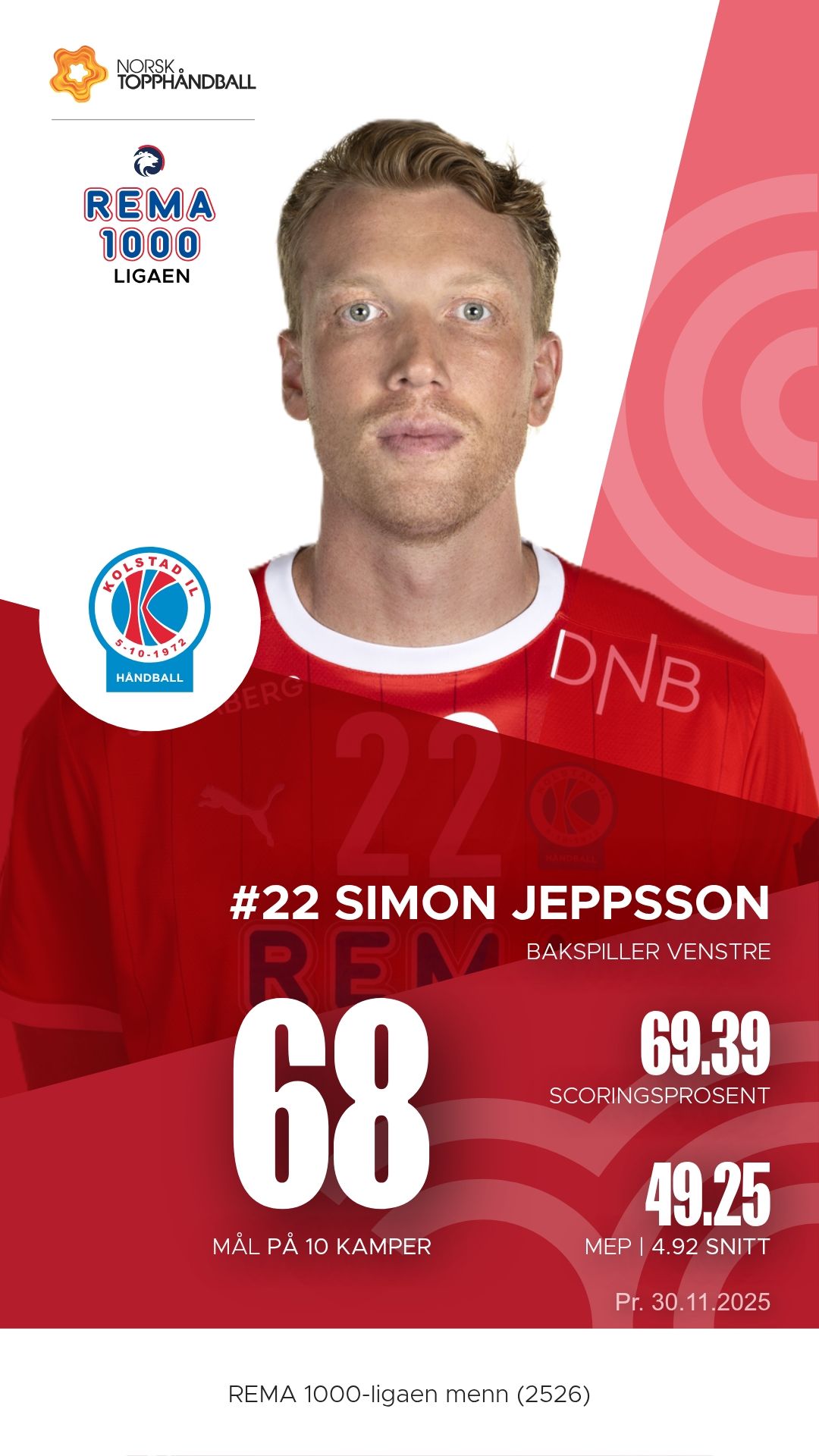 Kolstad har flere profiler som kan vippe kamper i sin favør. Simon Jeppsson har vært lagets ubestridte motor med både mål og målgivende pasninger i bøtter og spann, mens Simen Ulstad Lyse har vært en konstant trussel fra venstre bakspillerposisjon med sitt kraftfulle stegskudd og smarte krysninger. Linjespilleren Martin Hernes Hovde har vært dødelig effektiv fra strek, og målvakten Nicolai Neupart har levert solide redninger når laget har trengt det som mest. Og nå er i tillegg Andreas Palicka tilbake fra etter skade, noe som gjør Kolstad til et komplett lag.
