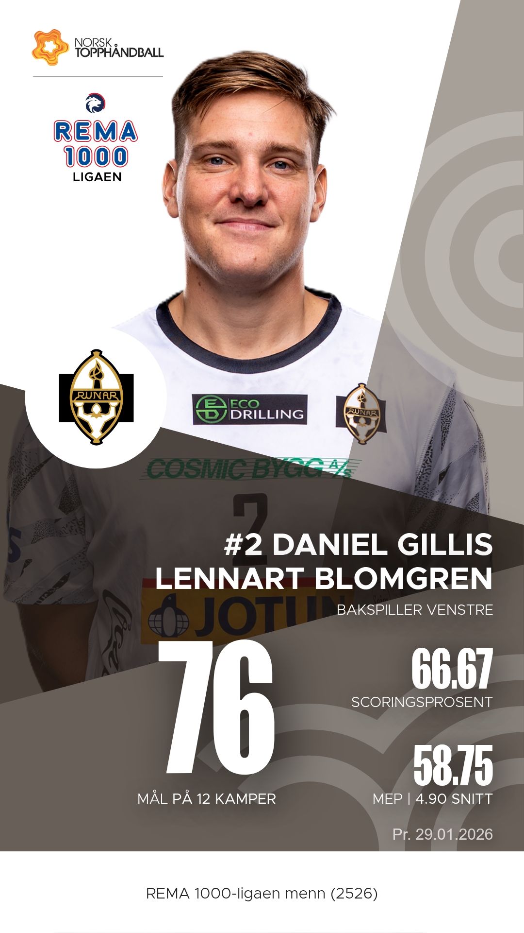 Vi stiller med flere spillere i storform. Daniel Gillis Lennart Blomgren har vært en bauta på venstre bakspillerplass og er vår mest effektive spiller denne sesongen. Med 94 scoringer og 76 målgivende pasninger har han vært motoren i angrepsspillet. Tord Lea Knutsen styrer rytmen som playmaker, med presise kryssepasninger og et blikk for spillet som åpner selv de tetteste forsvar. Tobias Michael Rivesjö har også levert sterke tall, og hans kombinasjon av kraft og teknikk gjør ham til en konstant trussel i kontraspillet.