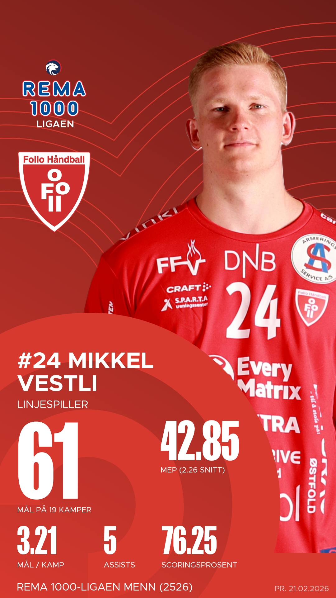 Denne kampen har alle ingredienser for å bli en publikumsfavoritt. Follo vil garantert forsøke å sette tempo og spille på entusiasmen fra hjemmepublikummet, men Runar har et kollektiv som trives i høyt tempo og som vet hvordan de skal utnytte overgangene. Se opp for Rambo og Blomgren i de raske kontringene, og for Vestli og Nielsen i duellene på motsatt side. Det er duket for en kamp der Runar kan befeste sin posisjon i medaljekampen – og der Follo må levere sesongens beste for å stå imot bølgen fra Sandefjord.