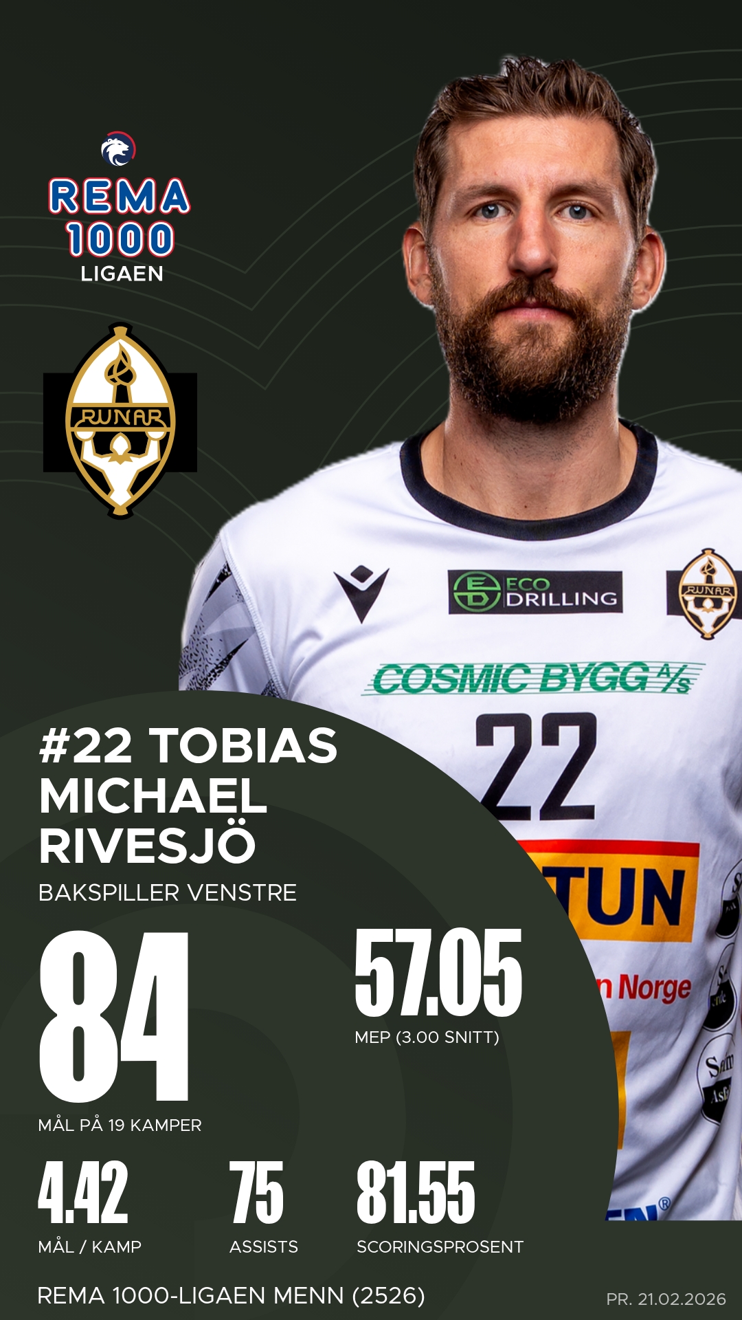 For bortelaget er det vanskelig å komme utenom Christoffer Rambo. Den rutinerte høyre bakspilleren har vært en ledestjerne hele sesongen, både som toppscorer og som playmaker med et vell av assists. Daniel Gillis Lennart Blomgren har vært et konstant uromoment fra venstre bak, med kraftige gjennombrudd og presise skudd fra distanse. I tillegg har Tobias Michael Rivesjö levert på høyt nivå med både mål og målgivende, mens målvakt Viktor Tofthøj Warrer har reddet Runar i flere jevne oppgjør med reflekser i verdensklasse. Dette er et lag fullt av rutine og kvalitet – og de reiser til Stil Arena med selvtillit og sult etter mer.