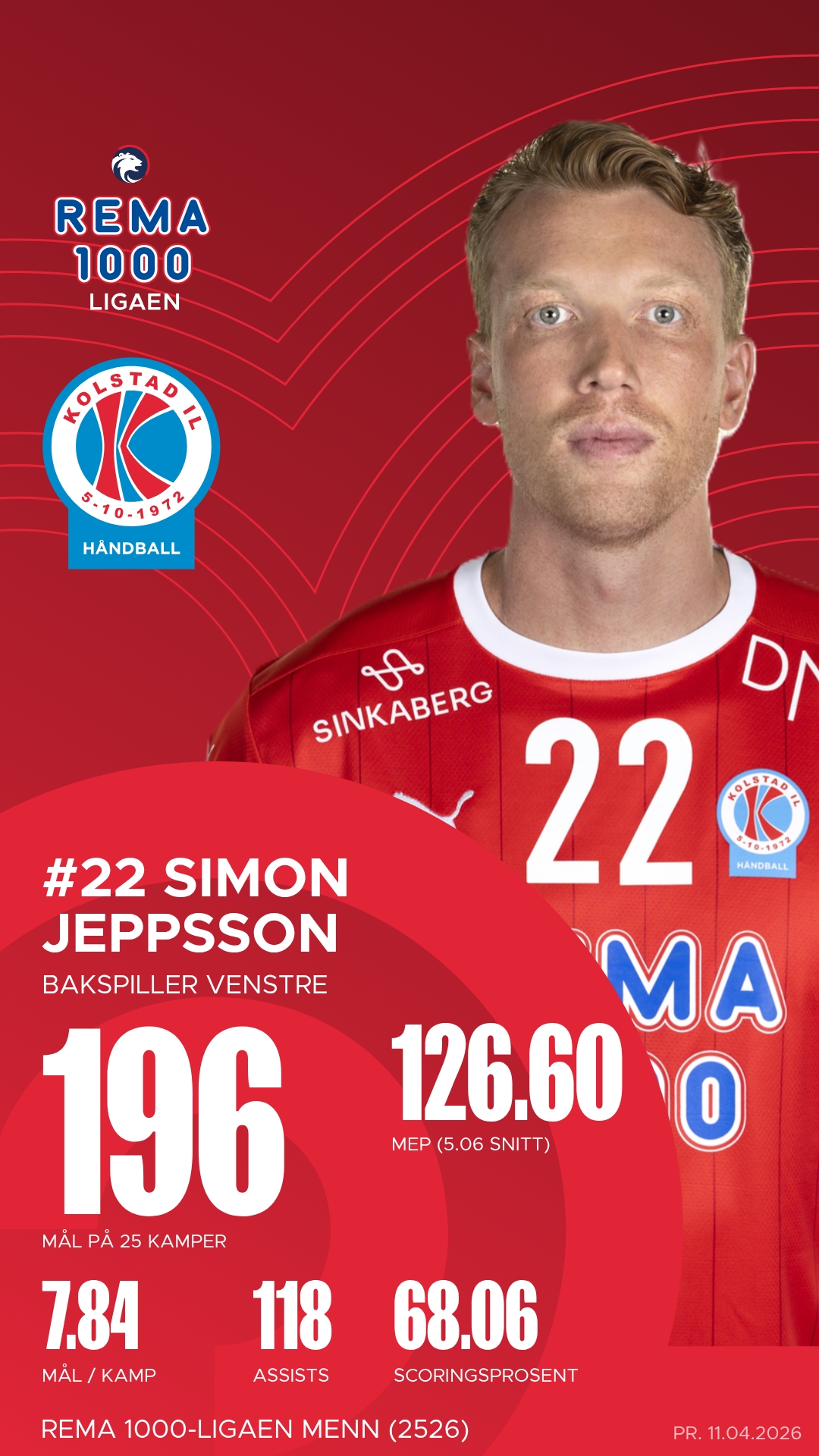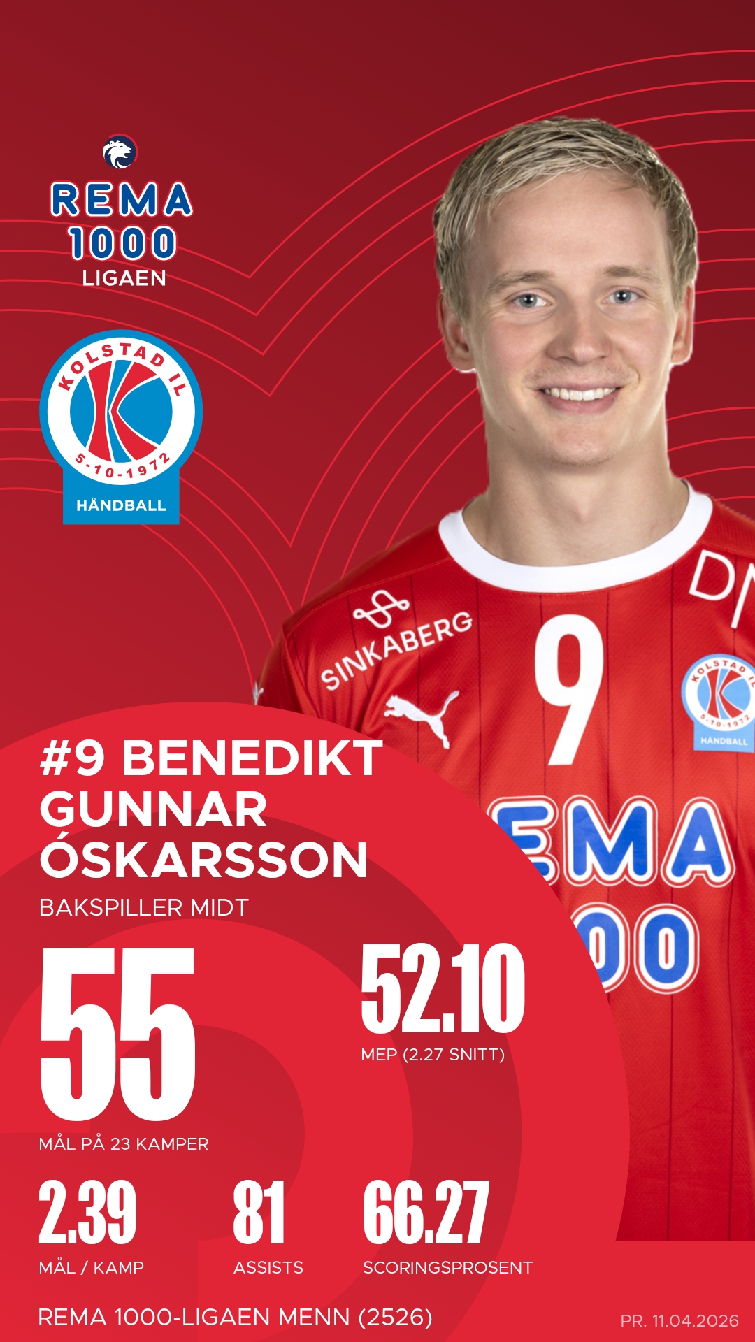 For Kolstad var Simon Jeppsson kampens mest produktive spiller med ti mål, mens Sigvaldi Björn Gudjonsson og Benedikt Gunnar Óskarsson bidro sterkt til seieren med effektivt samspill og presise avslutninger.